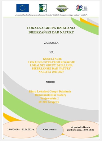 W związku z trwającymi pracami nad stworzeniem Lokalnej Strategii Rozwoju Lokalnej Grupy Działania Biebrzański Dar Natury na lata 2023-2027, Lokalna