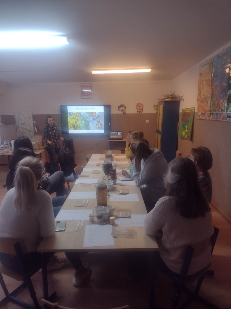 Kolejne wydarzenie projektowe skierowane było do lokalnej społeczności. W grudniu zorganizowano warsztaty „Jak nie dać się przeziębieniu?”. Podczas zajęć przedstawiono rośliny, które pomagają wzmocnić odporność i przetrwać okres wzmożonych zachorowań oraz naturalne zamienniki najbardziej popularnych lekarstw. Uczestnicy warsztatów mogli skosztować naparów ziołowych. Samodzielnie przygotowali mieszanki ziołowe oraz maść na katar. To był miło i pożytecznie spędzony czas, a panie zabrały ze sobą do domów dawkę wiedzy, różne receptury oraz wykonane specyfiki.