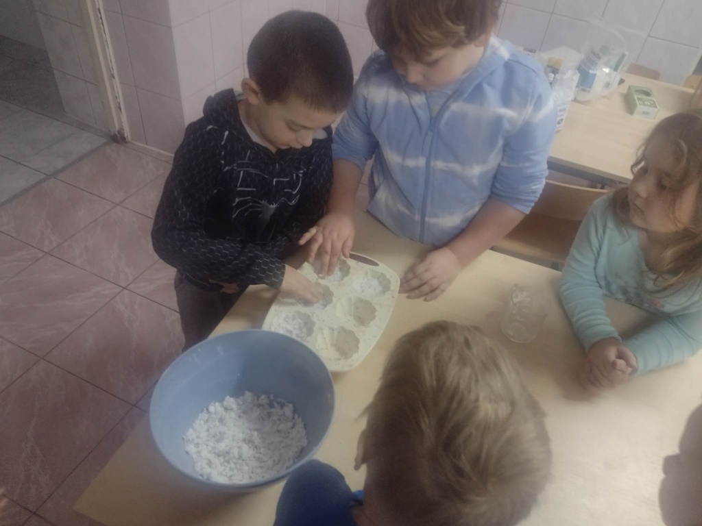 Styczeń i luty to kolejne eko – aktywności dla dzieci. W styczniu wytwarzały one naturalne kule do kąpieli, które później wręczyły jako podarki dla swoich dziadków podczas uroczystości szkolnej z okazji Dnia Babci i Dziadka. W lutym wykonywały natomiast woskowijki – ekologiczne zamienniki folii spożywczej i jednorazowych pojemników. Woskowijka to, jak sama nazwa wskazuje, woskowa owijka, czyli bawełniana ściereczka zabezpieczona specjalną mieszaniną – woskiem pszczelim i olejkiem jojoba. Gotowe woskowijki zabrały do swoich domów, aby tam promować tą „folię na żywność” wielokrotnego użytku.