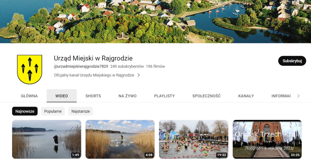YouTube – kanał Urzędu Miejskiego w Rajgrodzie