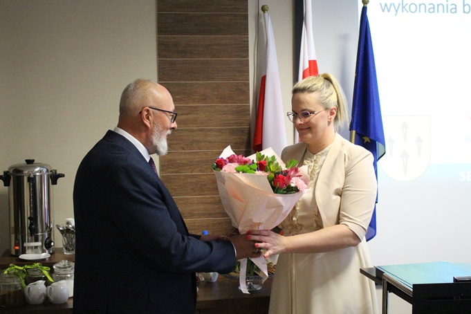 Radni Rady Miejskiej w Rajgrodzie wraz z Sołtysami i kierownikami jednostek organizacyjnych wręczyli Burmistrzowi Rajgrodu pamiątkowy grawerton i złożyli gratulacje za otrzymane absolutorium z tytułu wykonania budżetu Gminy Rajgród za 2022 r.. Burmistrz podziękował za otrzymane absolutorium. Przekazał podziękowania oraz kwiaty na ręce Skarbnik Gminy – Joanny Andruk.