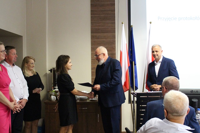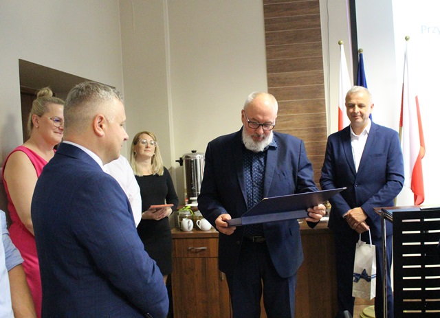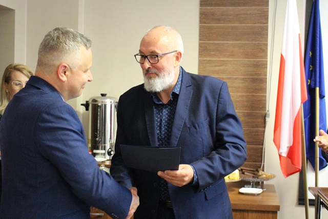 Następnie Burmistrz Rajgrodu Ireneusz Gliniecki uroczyście wręczył Andrzejowi Graczewskiemu powierzenie stanowiska Dyrektora Zespołu Szkolno-Przedszkolnego