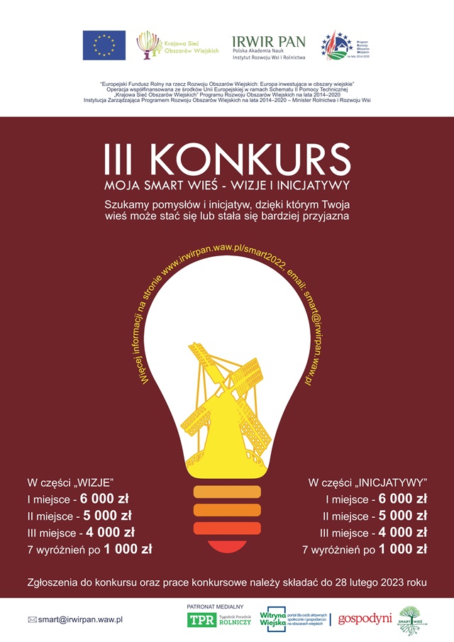 Instytut Rozwoju Wsi i Rolnictwa Polskiej Akademii Nauk (IRWiR PAN) zaprasza do udziału w III Konkursie „Moja smart wieś – Wizje i Inicjatywy”.
