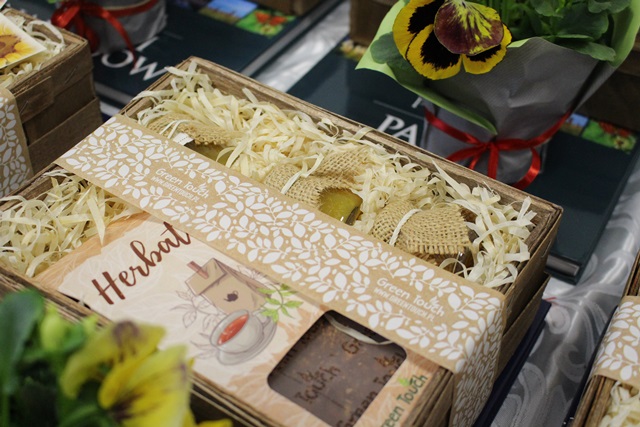 z herbatą, miodem i konfiturą, piękne albumy oraz wiosenne bratki.