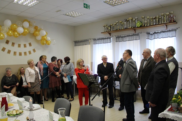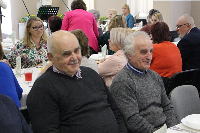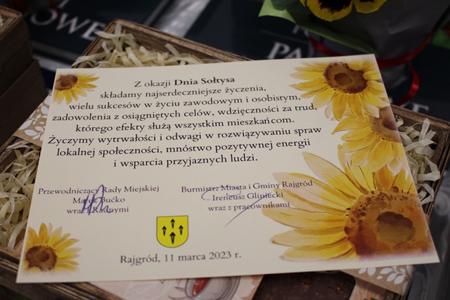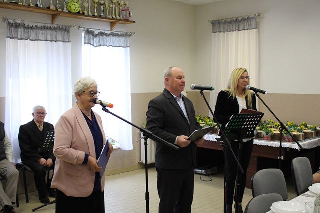 i oklaski, przyszła pora na oficjalną część. Burmistrz Rajgrodu Ireneusz Gliniecki podziękował Seniorom za występ. Złożył życzenia Sołtyskom i Sołtysom, podkreślił jak ważna jest ich rola w działaniu samorządu. Złożył też życzenia wszystkim Paniom z okazji Dnia Kobiet. Do życzeń dołączyli: Bogusław Kuczyński Wiceprzewodniczący Rady Miejskiej w Rajgrodzie, Stanisław Król Przewodniczący Komisji Rewizyjnej Rady Miejskiej w Rajgrodzie, Adam Nietupski Przewodniczący Komisji Finansów i Rolnictwa RM w Rajgrodzie, Jarosław Matysiewicz Przewodniczący Komisji Skarg Wniosków i Petycji RM w Rajgrodzie oraz Piotr Milewski Sekretarz Gminy Rajgród. Goście otrzymali pamiątkowe upominki: zestawy