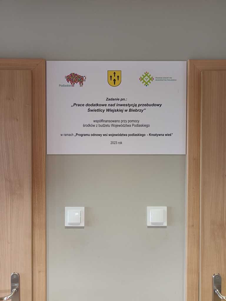 Inwestycja pn.: ,,Prace dodatkowe nad inwestycją przebudowy Świetlicy Wiejskiej w Biebrzy” polegała na zakupie podstawowego wyposażenia do nowo otwartej świetlicy w miejscowości Biebrza , której uroczyste otwarcie miało miejsce 14 lipca 2023 roku. W ramach zadania zakupiono: meble kuchenne, stoły, krzesła, sprzęt AGD/RTV, ławki, wieszaki, kosz do segregacji odpadów, rolety i żaluzje okienne, stojak na rowery i piłkarzyki. Nowe wyposażenie będzie służyć m. in. do organizowania spotkań mieszkańców gminy Rajgród o charakterze kulturalnym, rekreacyjnym, towarzyskim. Zakres prac obejmował również postawienie altany nieopodal świetlicy, umożliwiającej spędzanie wolnego czasu mieszkańców wsi na świeżym powietrzu. Świetlica Wiejska w Biebrzy wyposażona w niezbędny energooszczędny sprzęt, meble, sprzęt sportowy umożliwi pełne i właściwe wykorzystanie obiektu w tym organizację imprez integracyjnych m.in. spotkań z filmem, spotkań ekologicznych, spotkań wigilijnych, balów przebierańców dla dzieci i dorosłych, spotkań sołeckich, i innych organizowanych z inicjatywy mieszkańców. W efekcie nastąpi rozszerzenie obszarów integracji ze społeczeństwem i z mieszkańcami sąsiednich miejscowości. Realizacja zadania spowoduje wzrost integracji lokalnej społeczności, poprawę kondycji fizycznej mieszkańców oraz poprawi wizerunek sołectwa.