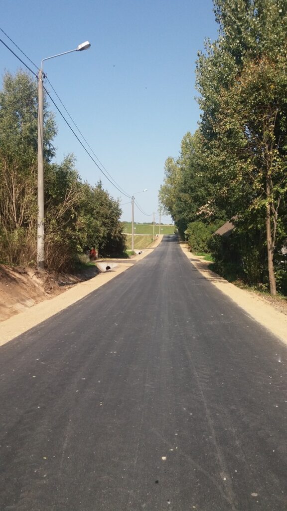 Prace polegały na przebudowie ok. 604 m drogi gminnej nr 129529B w miejscowości Karczewo. W ramach inwestycji wykonano nową nawierzchnię asfaltową szerokości 4,5 m, pobocza, zjazdy do nieruchomości przylegających do drogi oraz rowy odwadniające i przepusty.