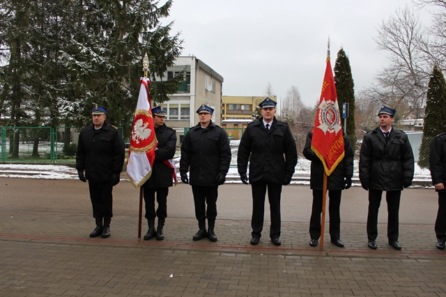 Burmistrz Rajgrodu Ireneusz Gliniecki, Prezes OSP Rydzewo Zdzisław Machul, Prezes  OSP Bełda Adam Jamiński, Prezes OSP Miecze Marcin Borkowski oraz Prezes OSP Woźnawieś Jarosław Bronakowski złożyli podziękowania za dotychczasową współpracę odchodzącemu na zasłużoną emeryturę młodszemu brygadierowi Andrzejowi Beczko – Komendantowi Powiatowemu Państwowej Straży Pożarnej w Grajewie.