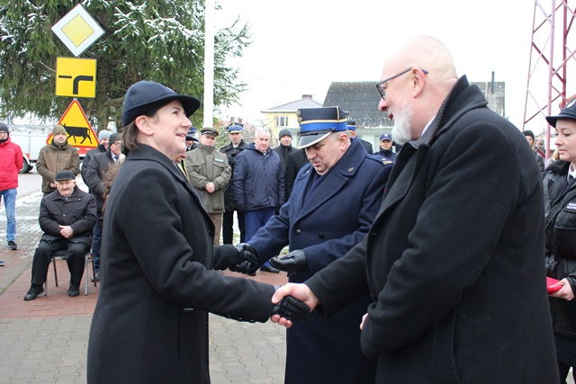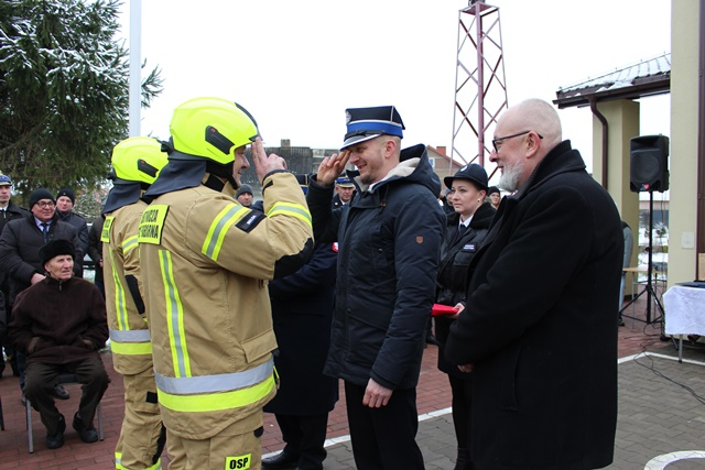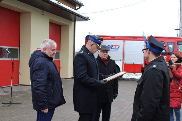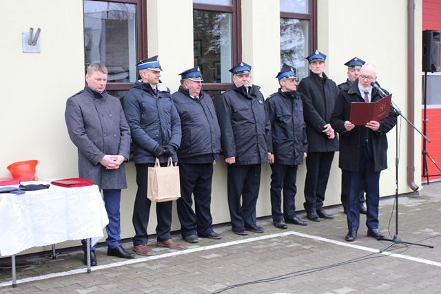 W trakcie uroczystości wręczono również akt ponownego włączenia do KSRG jednostce Ochotniczej Straży Pożarnej Żebry z gminy Wąsosz reprezentowanej przez druha Michała Zarzeckiego oraz druha Filipa Karwowskiego.
