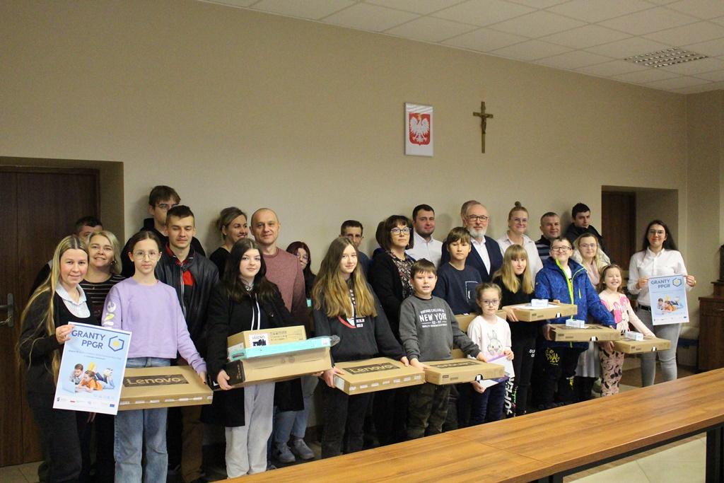 W dniu 26 stycznia 2023 r. w Sali Konferencyjnej Urzędu Miejskiego w Rajgrodzie odbyło się uroczyste przekazanie sprzętu komputerowego dzieciom i wnukom pochodzącym z rodzin byłych pracowników PPGR,