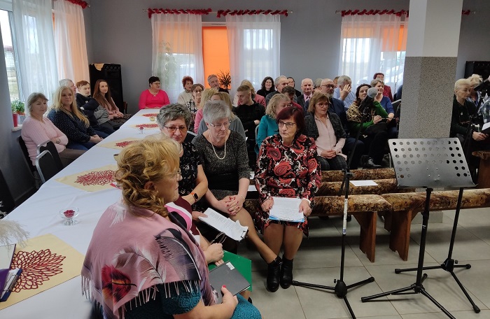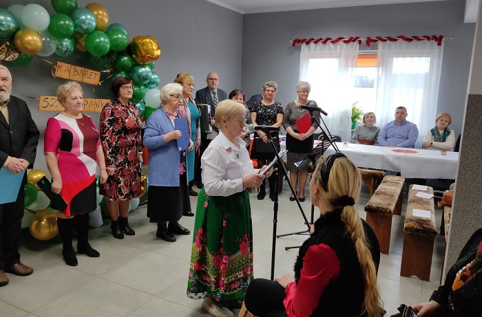 Dopiero co piałam o wieczorze kolędowo-urodzinowym, a tu nowa impreza. Na zaproszenie klubowej koleżanki Helenki, wspomnianej w poprzedniej relacji – 4 lutego nasz Senioralny Kabaret „Szczypawka” zjechał do Pieńczykowa i w sołeckiej świetlicy przedstawił program, prezentowany już na Dniach Rajgrodu 2022. Powtórka miała swój sens, ponieważ rolnicy nie mają większych możliwości uczestniczenia w obchodach ze względu na pracę w obejściu i w gospodarstwie. Było to dla obydwu stron pierwsze takie spotkanie. I zarówno strona Gospodarzy, jak i nasza nie była wolna od tremy. Wszyscy chcieliśmy zaprezentować się jak najlepiej. Zwłaszcza, że na to południowe sobotnie spotkanie przybyli zaproszeni przedstawiciele władz i instytucji lokalnych, z panem Burmistrzem na czele, a także przedstawicielki innych Kół Gospodyń Wiejskich. Rzecz jasna byli też sołtysi i radni naszej gminy, a także mieszkańcy i sąsiedzi.