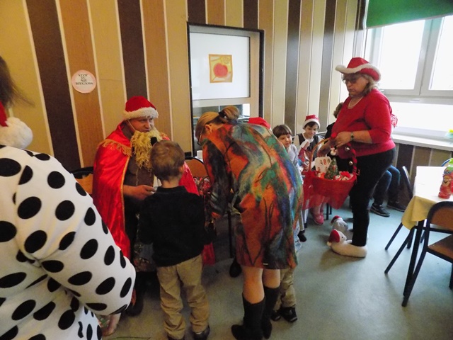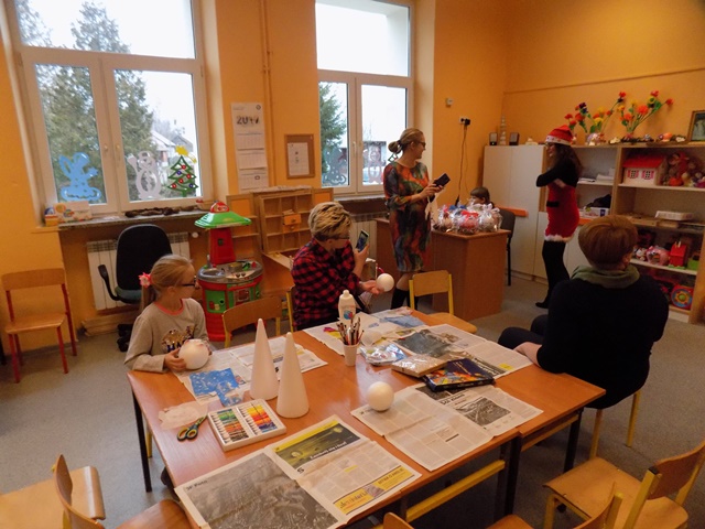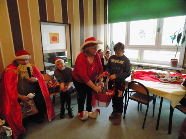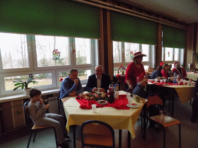 Ze świetlicy szkolnej dobiegał śmiech zadowolonych dzieci, bawiących się przy muzyce oraz gwar rozmów przy zimnych i ciepłych napojach i pysznych przekąskach przygotowanych przez naszych podopiecznych oraz ich rodziców. Nasi goście również dali porwać się do tańca i wspólnej zabawy przy tworzeniu pięknych ozdób świątecznych. Największą atrakcją była wizyta Św. Mikołaja, który hojnie obdarował prezentami wszystkie grzeczne dzieci.