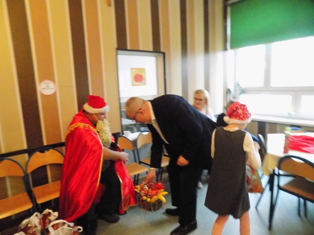 Swój wkład w postaci słodkich upominków mieli też Pomocnicy Św. Mikołaja: Pan Burmistrz oraz Pani radna Graczewska, za co serdecznie dziękujemy w imieniu wszystkich dzieci!!!
