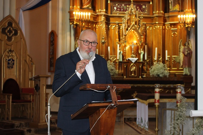 Po zakończeniu mszy świętej przeszliśmy do części naukowej naszego sympozjum, które prowadziła Maria Fliszewska – Dyrektor Domu Kultury w Rajgrodzie. Gości powitał Burmistrz Miasta i Gminy Rajgród – Ireneusz Gliniecki. Zaprezentowano dwa wykłady, który były szczególnie wartościowe i pouczające. Pierwszy z nich został wygłoszony przez Kacpra Bućko, który przedstawił specyfikę i historię powstania wsi Grzędy. Był to fascynujący zarys przeszłości tego malowniczego miejsca, ukazujący ewolucję osady w dynamicznych okolicznościach historycznych. Drugi wykład, prezentowany przez doktora Tomasza Dudzińskiego, dotyczył tragicznej Pacyfikacji wsi Grzędy. Prelegent przedstawił głęboko poruszającą opowieść o tym tragicznym wydarzeniu, które przyniosło cierpienie i śmierć wielu niewinnych mieszkańców. Wykład nawiązywał także do sposobów upamiętnienia w czasach komunistycznych i współczesnych tego niezwykłego wydarzenia.