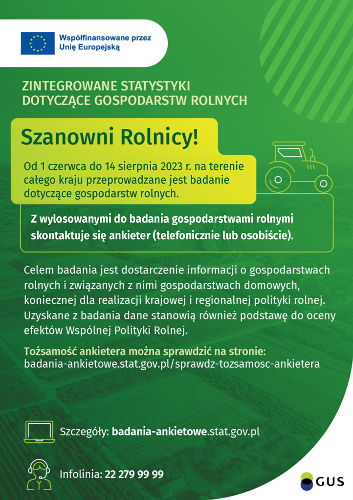 Weź udział w trwającym badaniu „Zintegrowane statystyki dotyczące gospodarstw rolnych”!